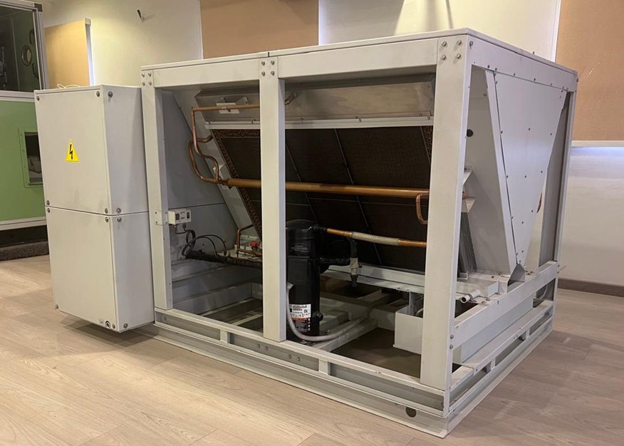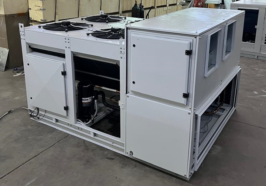 Evaporative-cooled condenser option is available for all air cooled DX units